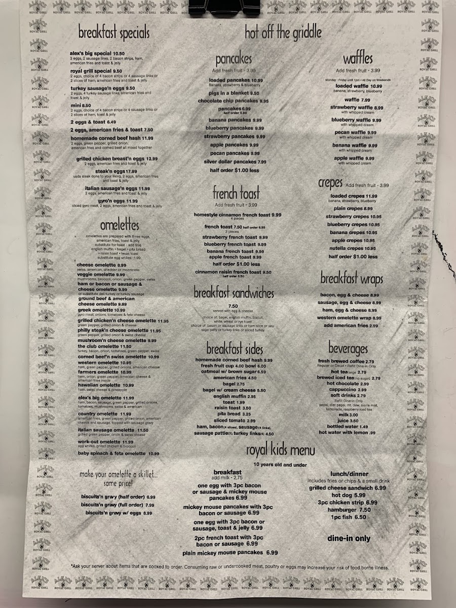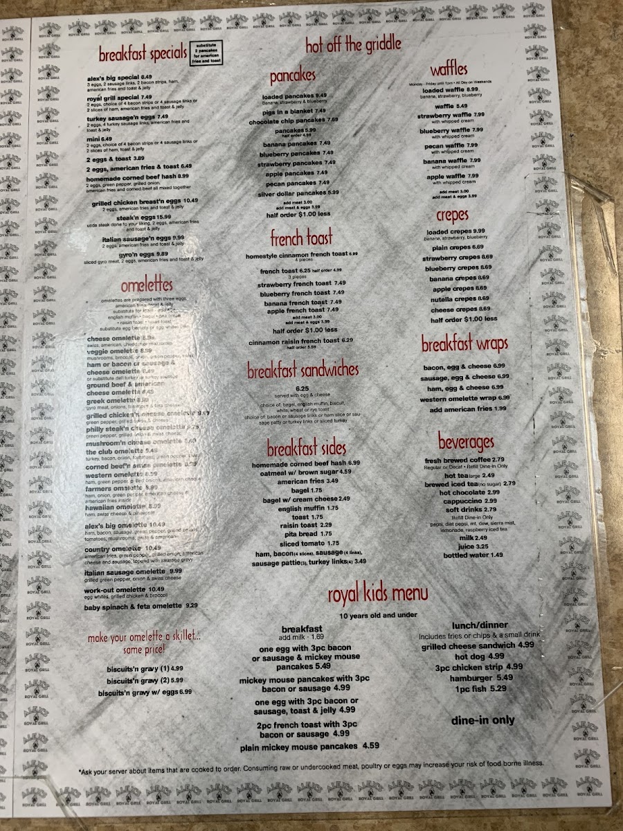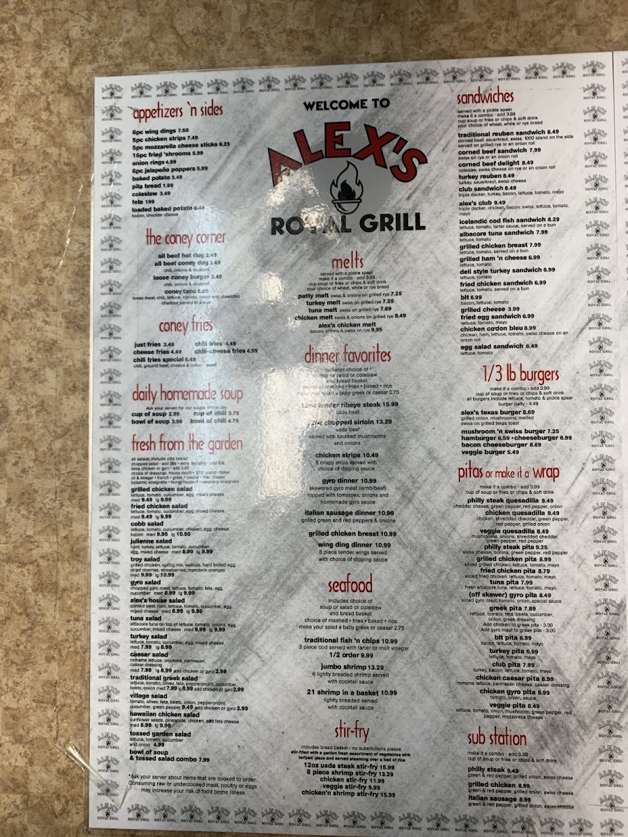 Alex's Royal Grill Menu